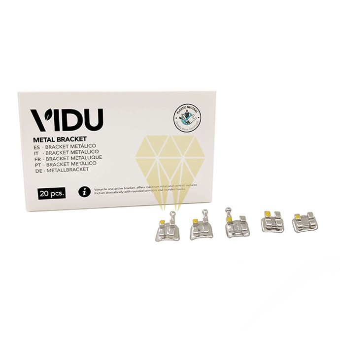 Los Brackets metálicos Mini Roth de VIDU tienen forma romboidal y superficie lisa que sumado al tamaño mini permiten que el paciente se sienta cómodo. Están fabricados en acero inoxidable duro de alta calidad, tecnología de fundición de precisión y soldadura láser que garantiza un rendimiento estable. Su bajo perfil mejora tanto la estética como el confort y sensación del paciente.
