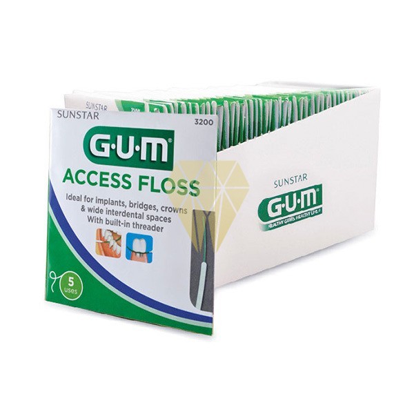 El hilo dental GUM ACCESS es muy fácil de usar, gracias a un enhebrador integrado que facilita su inserción en zonas estrechas y de difícil acceso.