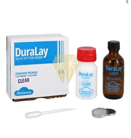 Resina calcinable, fraguado en aproximadamente 5 minutos. Forma un patrón denso y preciso, sin contracción, que se puede recortar y manipular sin temor a roturas, picaduras, distorsión o cambios de temperatura. Se funde a la misma temperatura que la cera, sin dejar residuos. Disponible en polvo rojo y claro.
