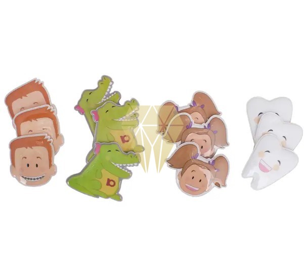 Los espejitos representan nuestros personajes de Fantasía Dental: Mía, Gus, Drila y Mollie.