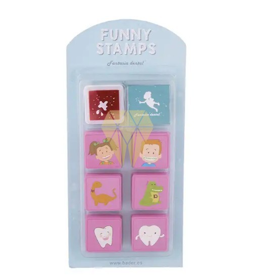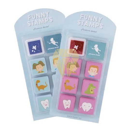 Nuevos sellos con diseños de nuestros personajes de Fantasía Dental®: Mia, Gus, Dino, Drila, Mollie y Baddy.