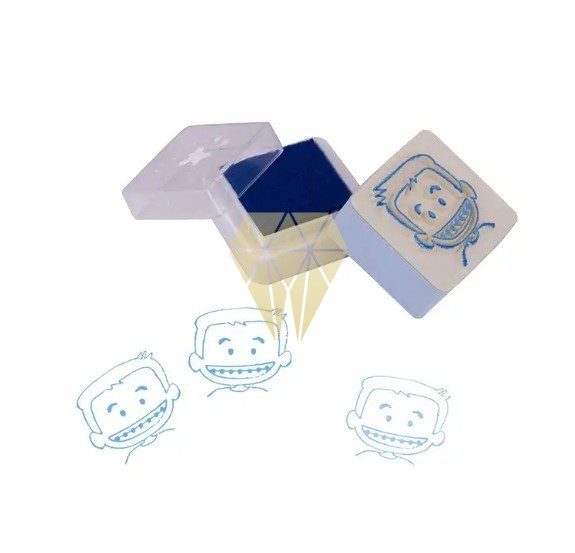 Pack x 8 unidades. Cada pack contiene de 6 sellos, 1 mini bloc y un tampón de tinta.