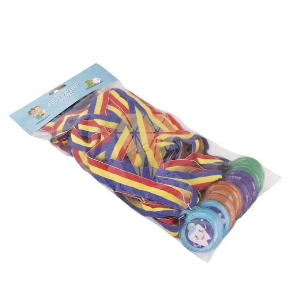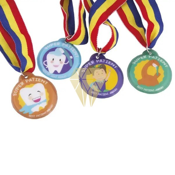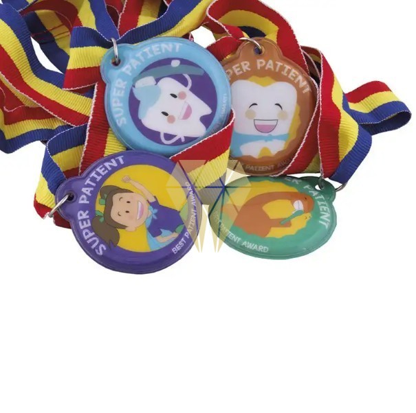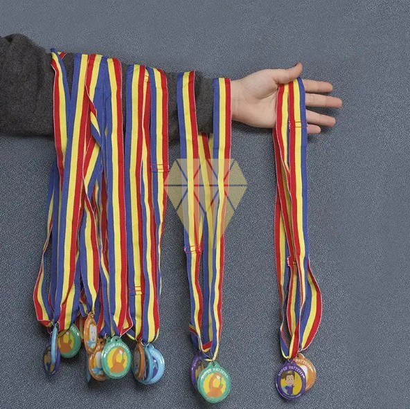 Las medallas son redondas y están fabricadas en plástico de excelente calidad rematadas con un colgante de tela.