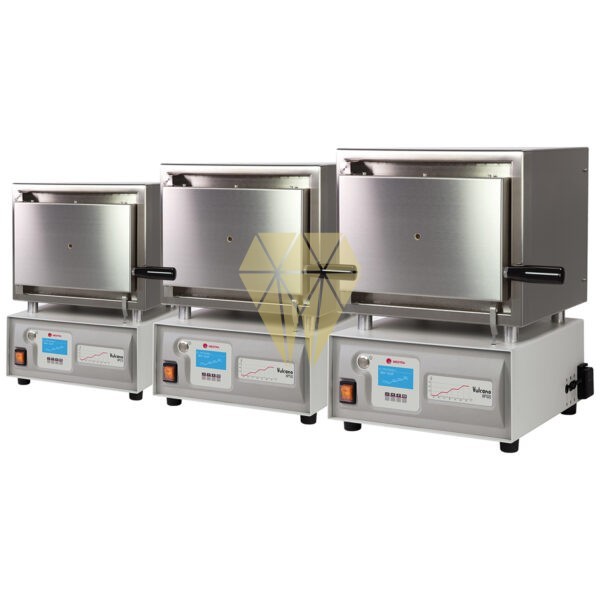Similares a los hornos de precalentamiento HP-25, HP-50 y HP-100 excepto en el control electrónico. La mufla está montada en caja de acero inoxidable 18/8, el material que mejor soporta los duros requerimientos en cuanto a temperaturas de este tipo de aparatos. También disponen de mufla cerámica de alta duración con resistencias eléctricas integradas. Hay tres versiones con capacidades diferentes para adaptarse a las necesidades de cualquier laboratorio. El control electrónico puede ser programado con un tiempo de espera hasta el inicio de tratamiento, y tres rampas de calentamiento con sus correspondientes mesetas. Las temperaturas y tiempo de duración de rampas y mesetas pueden programarse de forma sencilla. Los valores máximos de temperaturas y tiempos son de 1100 °C. También se puede programar en °C por minuto. Así mismo, es posible almacenar en memoria hasta un total de 5 programas. Los hornos cuentan además con aviso acústico de fin de programa, sistema de detección de puerta abierta y sistema de detección de rotura en termopar.
