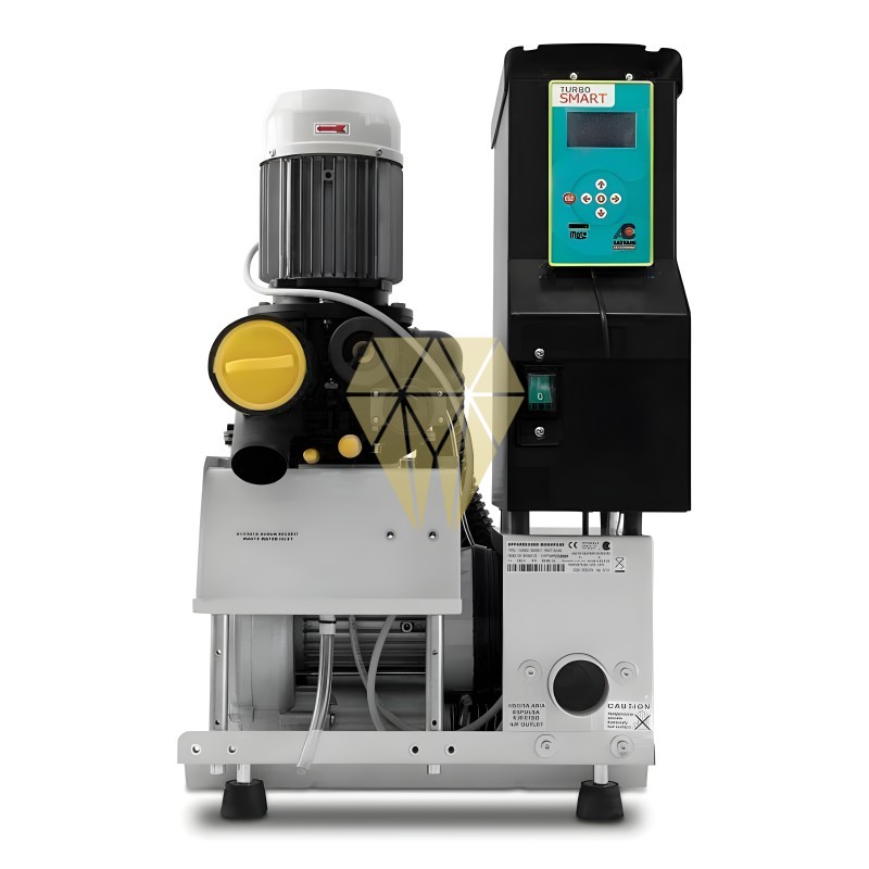Con su sistema inverter, Turbo Smart reconoce en cada momento las necesidades de aspiración de la clínica, adaptando la velocidad del motor en tiempo real.