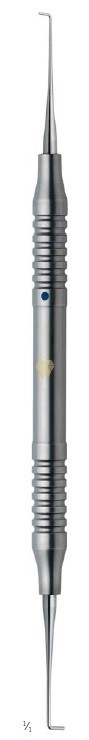 Condensador para MTA modelo Zürich KLS Martin. Longitud 17 cm. Mango hueco de 8 mm. de grosor. Combinación del condensador bola - espátula. Ideal para empastes retrógrados con MTA y EBA. Envase.- 1 unidad.