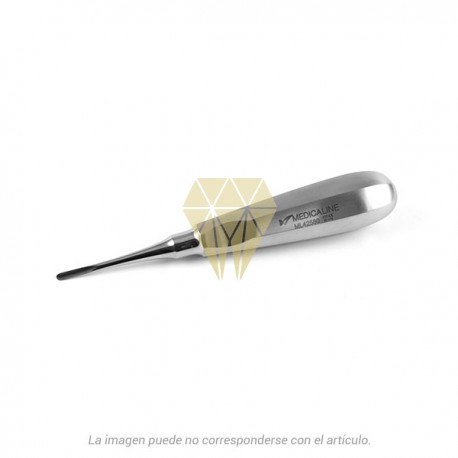 Permite la inserción óptima, no agresiva, en el espacio interproximal o el resquicio periodontal. Posibilita 4 movimientos de luxación al realizar un giro de 180°: 2 x mesial y 2 x distal. La palanca trabaja con 5-7 movimientos de giro y apoyo. Por este m