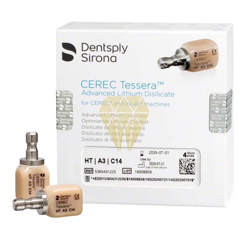 Los bloques de Disilicato de Litio avanzado (ALD) Cerec Tessera™ ofrecen una estética excepcional para una restauración realmente similar al diente natural. Resistencia a la flexión biaxial hasta un 32% superior para que la restauración sea duradera. Y un tiempo de procesamiento hasta un 44% más rápido. Velocidad resistencia y estética. Los bloques CEREC Tessera™ consiguen un rendimiento excepcional por partida triple mediante una química única que incorpora dos estructuras de vidrio adicionales dentro de una matriz de circonio vitreo. Estos dos vidrios trabajan juntos para crear una fusión sin precedentes de resistencia y belleza en un sólo bloque al tiempo que mejoran el tiempo de procesamiento en general. Tiempo de cocción de tan sólo 45 minutos en horno Cerec SpeedFire.