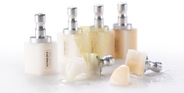Vitablocs incluyen tres o cuatro capas, respectivamente (triluxe/ triluxe forte), de diferente intensidad cromática. El diseño se estos bloques se basan en los Mark II. Estos bloques multicapa permite la reproducción asistida por ordenador de la transición cromática de los dientes naturales. En los bloques Triluxe Forte la transición de color entre el esmalte y el cuello ofrece unos matices aún más finos, acentuando al mismo tiempo el croma en la parte inferior de la dentina o del cuello, lo cual, junto a la fluorescencia creciente en la zona cervical garantiza un efecto cromático natural incluso con capas finas. Está indicado para carillas, coronas parciales y completas de dientes anteriores y posteriores.
