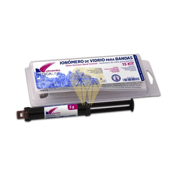 Ionómero de Vidrio para bandas.Facilidad de manejo. * Fraguado dual. * Color azul de fácil contraste, fácil de limpiar. * Ideal pa el levante de mordida.Confort del paciente.* Libera flúor.Confort del paciente. * Liberación contínua de flúor.1 jeringa Automix de 10 g + 5 puntas de mezcla + 5 puntas intraorales + instrucciones.