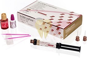 Cemento de fijación adhesivo de polimerización dual.Incrustaciones inlay y onlay, coronas y puentes totalmente en cerámica, en cerámica híbrida, en resina o con base metálica.Postes de metal, cerámica y fibra.Carillas totalmente cerámicas o de composite.Coronas y puentes en pilares de implantes. G-CEM LinkForce A2, G-Premio BOND, G-Multi Primer, accesorios.