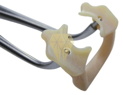 Clamp universal para uso en molares, ideal para el aislamiento dental con dique de goma. Su diseño y fabricación sintética consigue un buen agarre y firmeza al distribuir las fuerzas por toda la circunferencia cervical del diente a la vez que mantiene la integridad de los tejidos blandos gracias a sus bordes no cortantes.