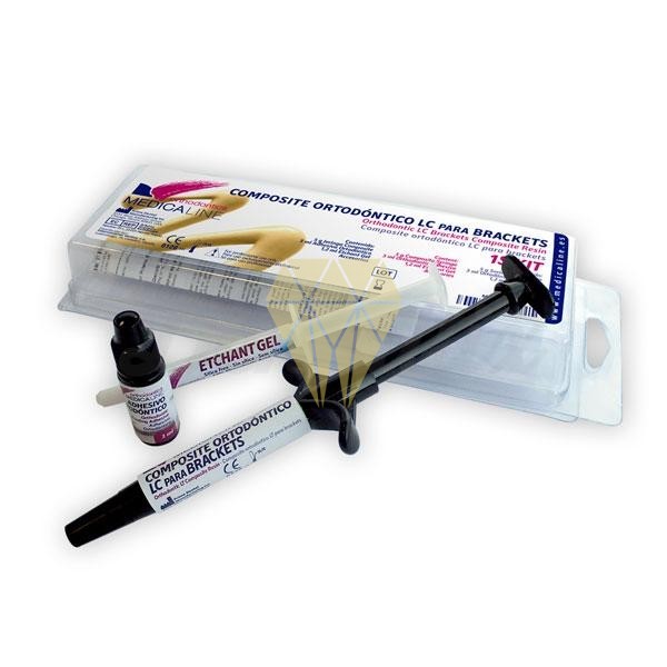 Composite Ortodóntico. Facilidad de manejo. * Su viscosidad permite fijar el bracket sin que resbale. * Tiempo de manipulación ilimitado. * Adhesión a metal, cerámica y plástico.Confort del paciente. * Libera flúor.4 jeringas de 5 g de Composite + 7 ml de Adhesivo Ortodóntico + 7 ml de Etchant Líquido + Accesorios.