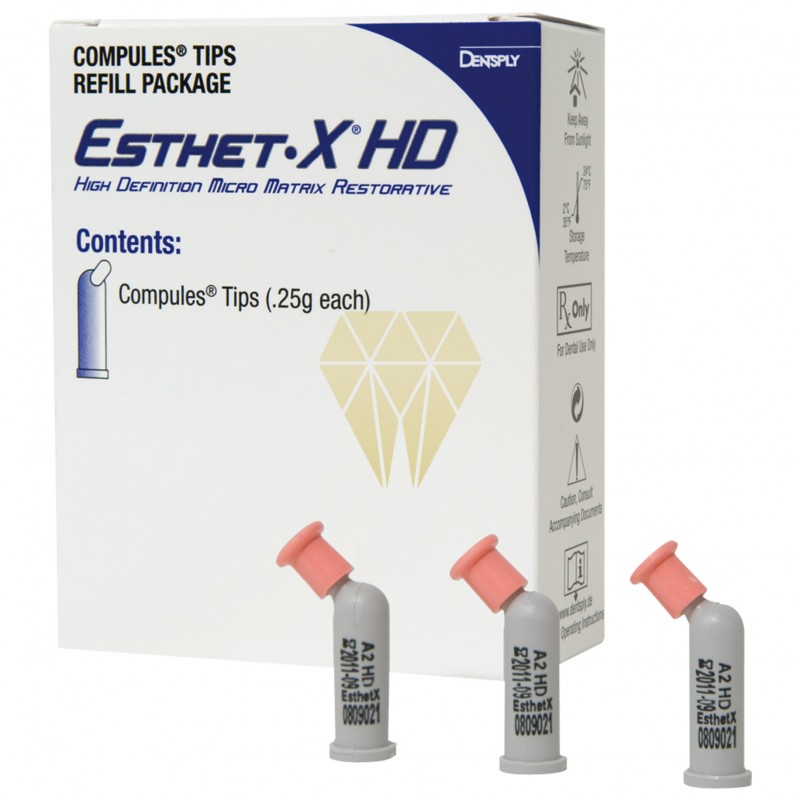 Esthet-X Hd es un composite de micro relleno de alta definición, se trata de uno de los métodos de restauración estética más completos. Está disponible en 31 colores y 3 opacidades que permite cubrir todos los requerimientos de restauraciones directas, además no es pegajosa y cuenta con la consistencia adecuada para el pulido perfecto de anteriores y posteriores. Esthet-X HD ofrece un manejo clínico idóneo para todas las clases de cavidad, carillas y cierres de diastema. 20 unidades de 0,25 gr de color A1.