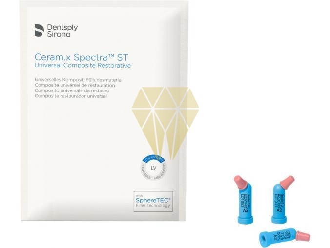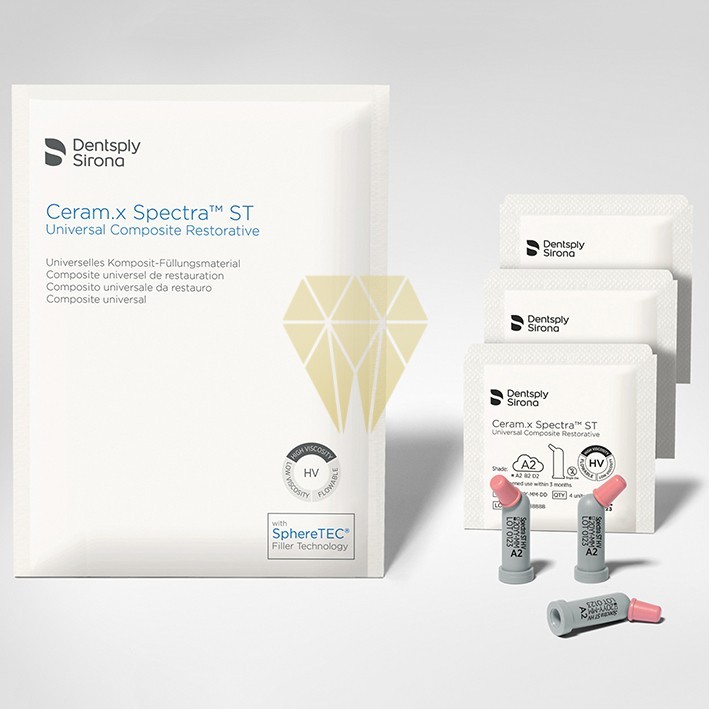 Ceram. X Universal ahora es el nuevo Ceram.X Spectra ST. Con la tecnología de relleno SphereTEC de Dentsply para seguir ofreciendo un rendimiento óptimo. Gracias a la tecnología SphereTEC, Ceram.x Spectra ST ofrece un manejo óptimo para colocarlo eficazmente ya que no se pega a los instrumentos, se adapta fácilmente a la cavidad, es fácil de esculpir y de dar forma. Con Ceram.X Spectra ST se obtienen de forma rápida resultados estéticos gracias a las propiedades camaleónicas de los colores en nube. Disponible en diferentes viscosidades: High Viscosity (HV) y Low Viscosity (LV).