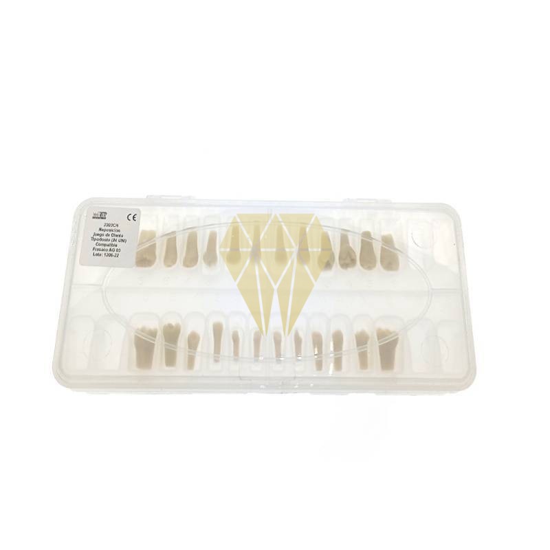 Caja de plástico reposición de 32 piezas dentales y tornillos.