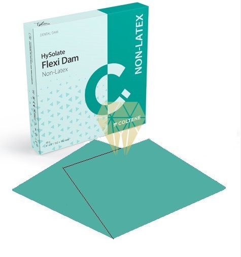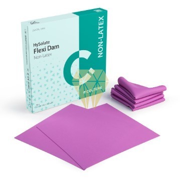 Dique de goma ultra-práctico. - Estructura flexible. - Diseñado con un tamaño conveniente para trabajar de 152x152 mm para asegurar una colocación fácil. - Libre de alergias y de olores.