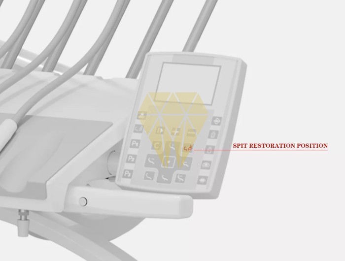 Botonera táctil para activación de: agua de la escupidera, movimiento de puesta a cero del sillón y activación automática de la aspiración.