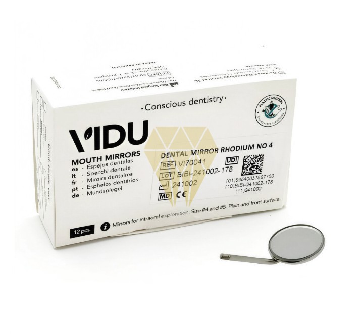 El Espejo Dental de Rodio VIDU ofrece una imagen clara, fabricados en acero inoxidable y recubiertos en rodio para evitar distorsiones y empañado. El recubrimiento de rodio evita que la luz realice dos cambios de medio (aire/cristal, cristal/aire) originándose ángulos de refracción diferentes. El resultado es una imagen más nítida y sin distorsiones.