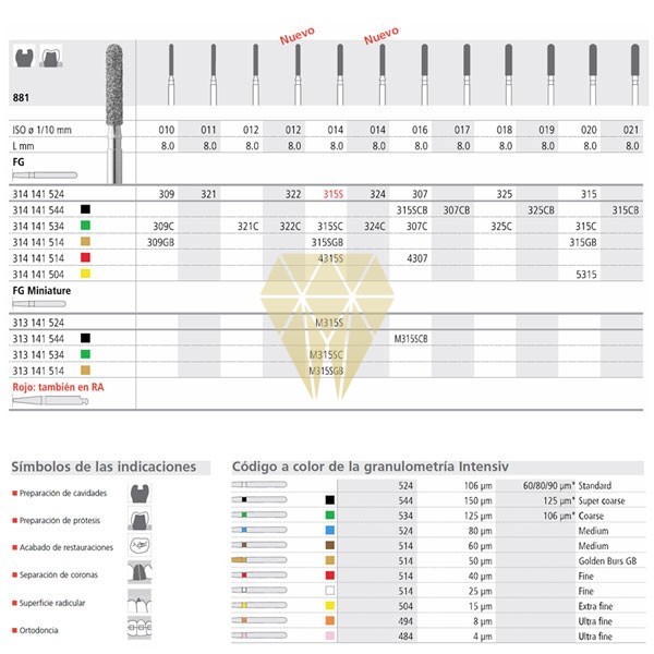 FRESAS DIAMANTE TURBINA FG 315L/6 881-020 MEDIO 6 UND.