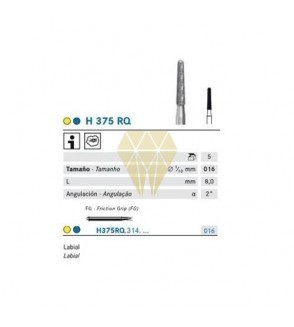 Instrumento de acabado en carburo de tungsteno tipo Q para un trabajo eficiente en composite labial y vestibular. ISO: 102 - Revolución Máxima: 450000 rpm - Forma: CÓNICA REDONDEADA Diametro 016 - Mandril TURBINA 0 Tipo de Grano: 0 - Aplicación: Pulido Composite Milhojas - Cantidad Embalaje: 5 ud