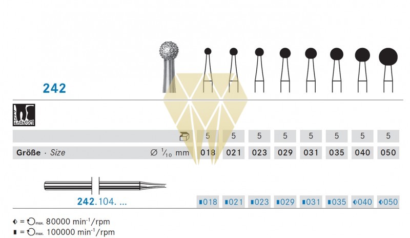 FRESAS DIAMANTE PIEZA MANO P.M. 242.104.018 KOMET BOLA ø 018 GRANO ESTANDAR 5 UND.