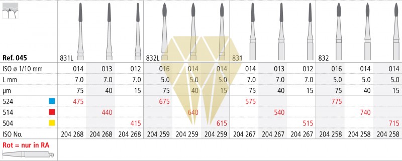 | Contenido: | 12 instrumentos con partes activas cónicas y con lanza, dimensiones ISO 012, 014 y 016, en grano 75, 40 y 15µm con cuello corto risp. largo |