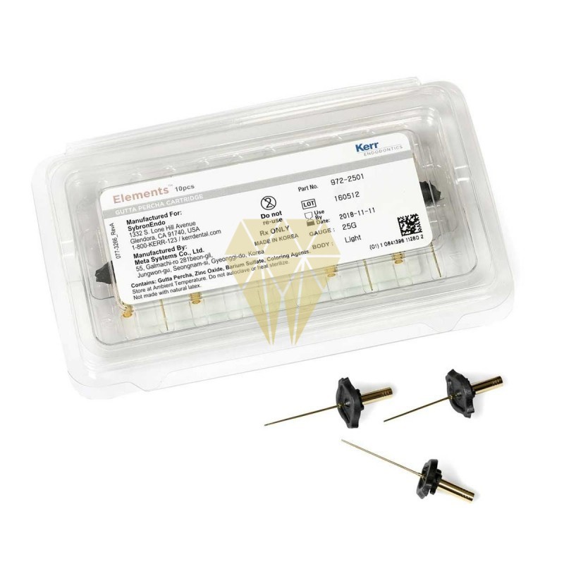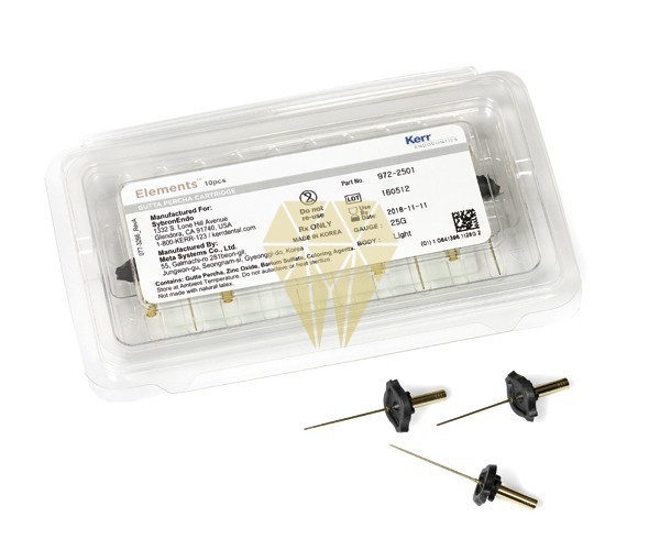 Cartuchos de gutapercha con aguja para el sistema inalámbrico Elements Free y la Unidad de Obturación Elements para un relleno termoplástico vertical tipo back-fill. Sistema mejorado con puntas más largas y flexibles que aportan un mayor acceso al conducto radicular, nuevo émbolo que permite aprovechar mejor todo el material, trasmisión del calor uniforme que proporciona una fluidez estándar durante toda la obturación.
