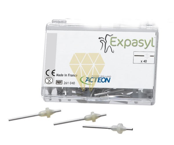 Cánulas. Sistema de retracción gingival atraumático, rápido y práctico.Sin anestesia, 2,5 minutos. Dispensado con pistola. Expasyl es un sistema de retracción gingival innovador y atraumático. Expasyl le ofrece la seguridad de obtener un acceso a los límites cervicales anatómicos reales, sea cual sea el tratamiento a realizar. Tras la retracción con Espasyl, obtendrá un campo clínico limpio e ideal para realizar una toma de impresión perfecta. Expasyl reemplaza las técnicas tradicionales, a menudo traumáticas, aportando las siguientes ventajas: 1. Separa la encía marginal del diente sin dañar la ligadura del epitelio, eliminando los riesgos de recesión gingival y de reabsorción ósea. 2. Permite obtener un campo clínico exento de cualquier desangramiento o supuración. 3. El sistema de apertura de los surcos es fiable, rápido y práctico. 4. Garantiza una retracción regular y reversible de la encía, sin traumatizar los tejidos y sin la necesidad de utilizar anestesia. 5. Aplicación sencilla y rápida para el facultativo e indolora para el paciente. El tiempo de trabajo total no excede de dos minutos y medio para una apertura surcular de calidad. 6. Pasta de alta viscosidad con propiedades astringentes y hemostáticas. 7. Dispensado del material con pistola.