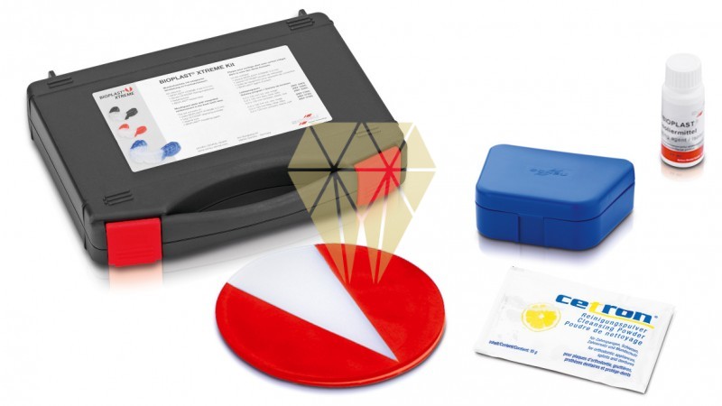 Color negro. Dos grados diferentes de dureza en una plancha de termomoldeo mediante el refuerzo integrado en la zona sensible de los dientes anteriores. Los golpes fuertes y de menor impacto típicos de los deportes de contacto son absorbidos. La forma en V de la inserción más dura (Shore A: 92) permite una anchura variable de la protección de los dientes anteriores.Los kits contienen 1 plancha BIOPLAST® XTREME (5,0 × 125 mm), 1 sobre de 15 g de limpiador CETRON®, 1 líquido aislante BIOPLAST®, caja retenedora.Solo para MINISTAR® a partir de 4/92 y BIOSTAR® a partir de 4/99.