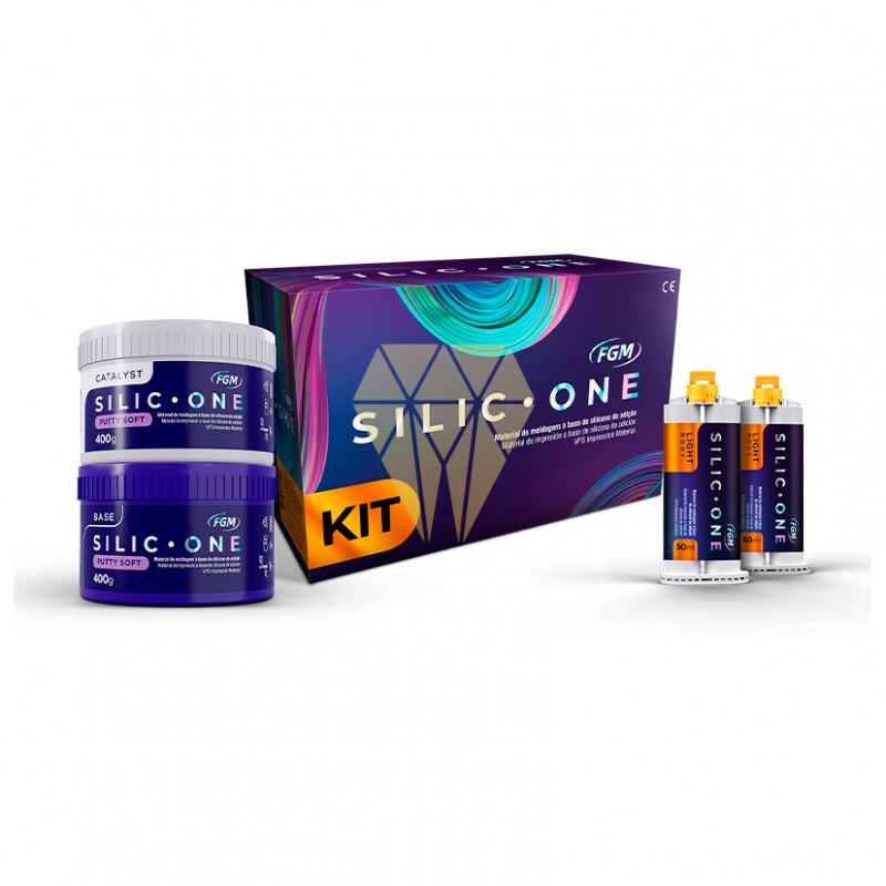 | Contenido: | Pasta base Putty Soft con 400 g + 1 frasco de pasta catalizadora Putty Soft con 400 g + 2 cartuchos de Light Body con 50 ml + 12 puntas mezcladoras + 12 puntas intraorales + 2 cucharas dosificadoras. |