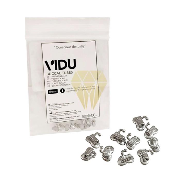 Los Tubos de Ortodoncia MBT de VIDU para primer molar, están fabricados mediante un proceso de fundición de precisión, con una línea de diseño compacto. Los tubos VIDU son fáciles de usar por su alta fuerza de adhesión y su base de malla 80 contorneada.